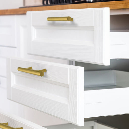 Akicon 3 Inch Hole Center Brushed Gold Kitchen Cabinet Handles 100% Solid Brass Drawer Pulls AK01930-BG