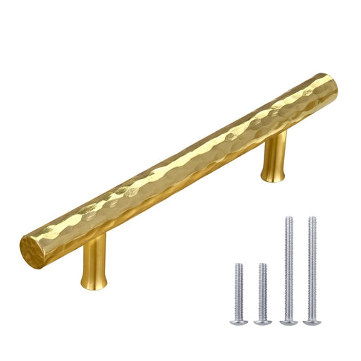 Akicon 3-3/4 Inch Hole Center Hammered Polished Gold Kitchen Cabinet Handles 100% Solid Brass Drawer Pulls AK01931A-PB