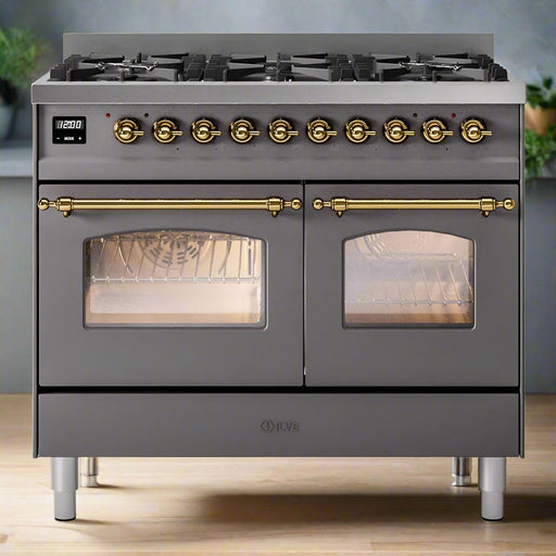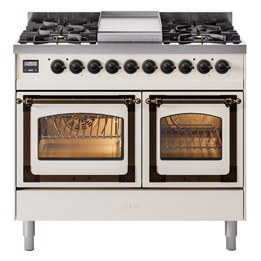 ILVE Nostalgie II Noblesse 40" Dual Fuel Range with 9 Sealed Burners + Griddle, Triple Glass Door - UND40FNMP