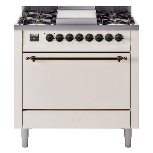 ILVE Nostalgie II 36" Dual Fuel Range with 6 Sealed Burners + Griddle Solid Door - UP36FQNMP