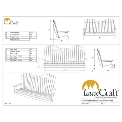 LuxCraftIn stockLuxCraft 5' Poly Adirondack Porch Swing With Flip Down Center Console The iconic Adirondack design conjures up camping trips, lakeside cottages, an...