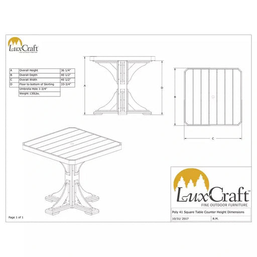 LuxCraftIn stockLuxCraft 41" Counter Height Poly Square Table Functional yet very attractive, the 41″ Square Table adds the finishing touch to any outdoor dining ...