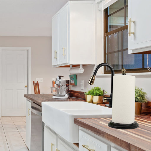 Black and Gold Paper Towel Holder Roll Dispenser Stand for Kitchen Countertop & Dining Room Table - AK79304-BLZG