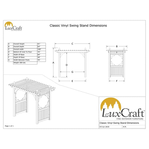 LuxCraftIn stockLuxCraft Classic Poly Vinyl Swing Stand - White STAND ONLY - SWING SOLD SEPARATELY Find Matching Swings HereCreate a lush hideaway with our Clas...