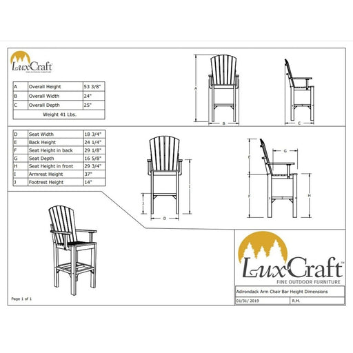 LuxCraftIn stockLuxCraft Bar Height Poly Adirondack Arm Chair Enjoy two armrests for added support and comfort with our new Adirondack Arm Chair–available in three...