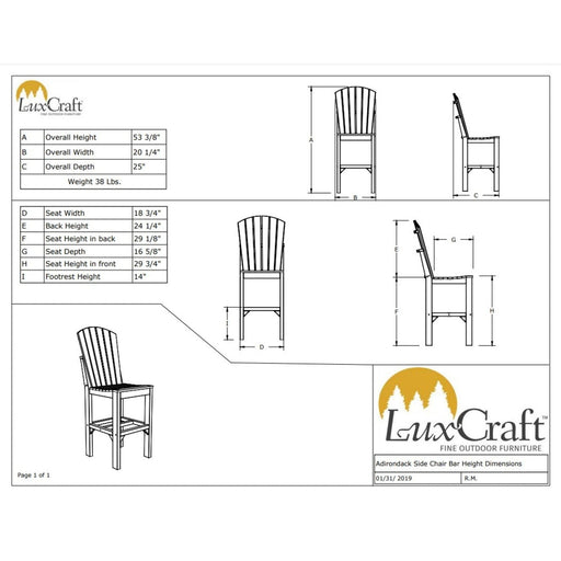 LuxCraftIn stockLuxCraft Bar Height Poly Adirondack Side Chair With our new Adirondack Side Chair, the versatile color and height options of our Regular Chair are ...