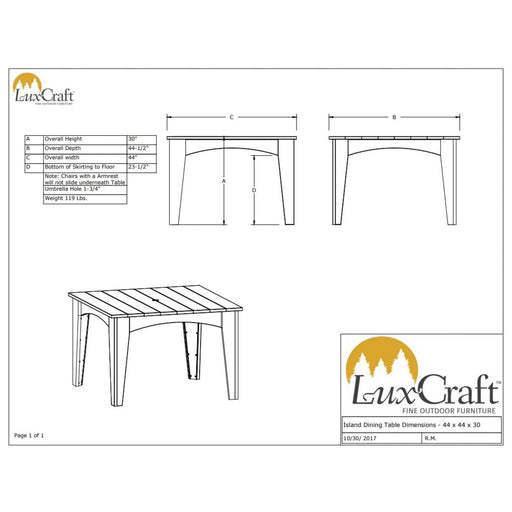 LuxCraftIn stockLuxCraft Island Poly Dining Table (44" Square) The Island Dining Table (44″ Square) is a great addition to your patio. Share your meals and swap s...