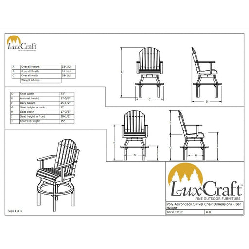 LuxCraftIn stockLuxCraft Bar Height Poly Adirondack Swivel Chair Adirondack Swivel Chair - A Perfect Blend of Durability and Style The LuxCraft Bar Height Pol...