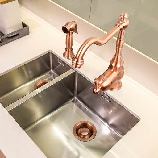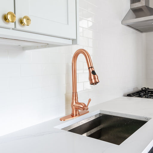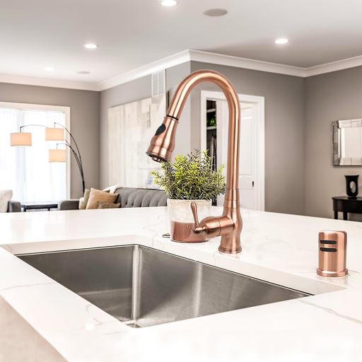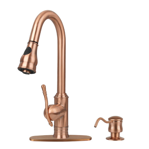 Copper Kitchen Faucet with in-Deck Handle and Soap Dispenser, Single Handle Solid Brass High Arc Pull Down Sprayer Head Kitchen Sink Faucet
