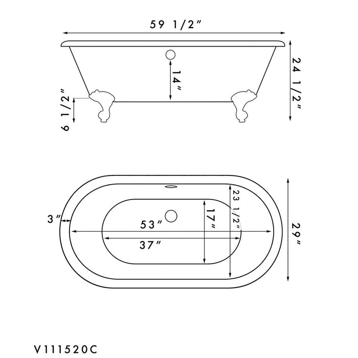 Cambridge Plumbing Acrylic Double Ended Clawfoot Bathtub With Continuous Rim and Complete Polished Chrome Plumbing Package 60Inch ADE60-398463-PKG-CP-NH