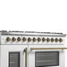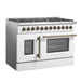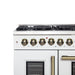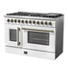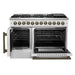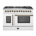Forno Galiano 48-inch French Door Dual Fuel Range, White & Antique Brass Design, 8 Sealed Burners - 107,000 BTU, Griddle, 6.58 cu.ft. Double Ovens