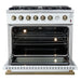 Marco 36-Inch Gas Range White & Antique Brass Design, 6 Burners 67,000 BTU, 5.36 cu.ft. Convection Oven